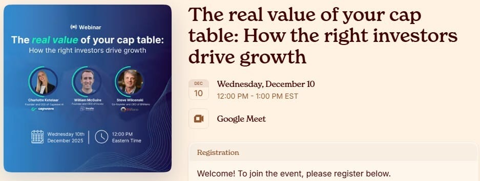One of the best in class founders who knows how to build a cap table that compounds value over time is joining Charlotte (Capwave CEO and Co-founder) and me — Steve Wilcenski (CEO & Co-founder of BNNano and Invicta Water).